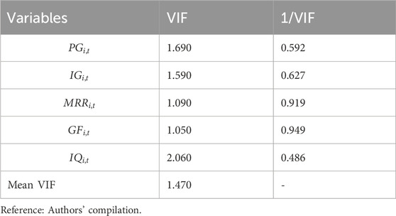 Sixth, the study uses Variance Inflation Factor (VIF) diagnostics to check for possible multicollinearity among regressors. This ensures that the coefficient estimates are free from multicollinearity. Furthermore, to deal with heteroskedasticity and serial correlation, Feasible Generalized Least Squares (FGLS) is used for robustness checks.