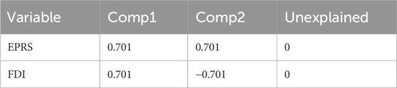 Second, the study enhances GF measurement by constructing a Principal Component Analysis (PCA)-based proxy that integrates renewable electricity generation (excluding hydro) and foreign direct investment (FDI). This multi-dimensional indicator captures both domestic financial flows and cross-border investments in green infrastructure, overcoming the limitations of single-variable green finance proxies.