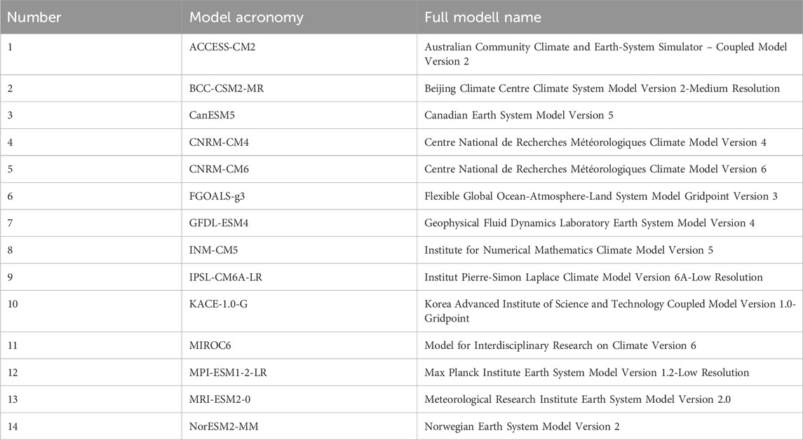 To assess anticipated hydroclimatic changes in the Black Volta Basin under four Shared Socioeconomic Pathway scenarios (SSP1-2.6, SSP2-4.5, SSP3-7.0, SSP5-8.5), this study employs an ensemble of 14 Global Climate Models (GCMs) from the Coupled Model Intercomparison Project Phase 6 (CMIP6). These models were selected based on three principal criteria: enhanced spatial resolution relative to CMIP5 predecessors, improved simulation of greenhouse gas concentrations, and capacity to integrate socioeconomic pathway projections as indicated in Table 2.