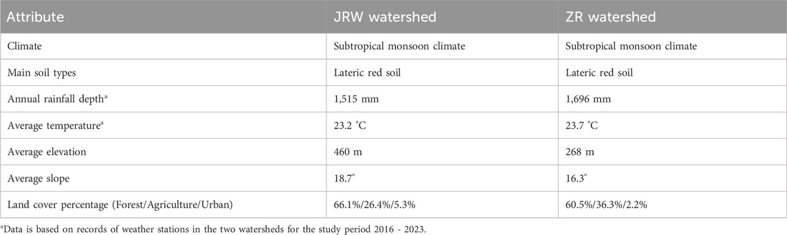 In addition, the Jiulong River west branch (JRW) is a main tributary of the Jiulong River in Fujian Province, and the JRW watershed is located next to ZR watershed. The similarities in topography, plant types, soil types and climatic conditions between the two adjacent watersheds warranted the sharing of SWAT model parameters, based on attribute similarity and the distance approximation principles of parameter transfer (Table 1). The stream flow of the JRW is monitored at Zhengdian hydrological station, which is marked in Figure 2.