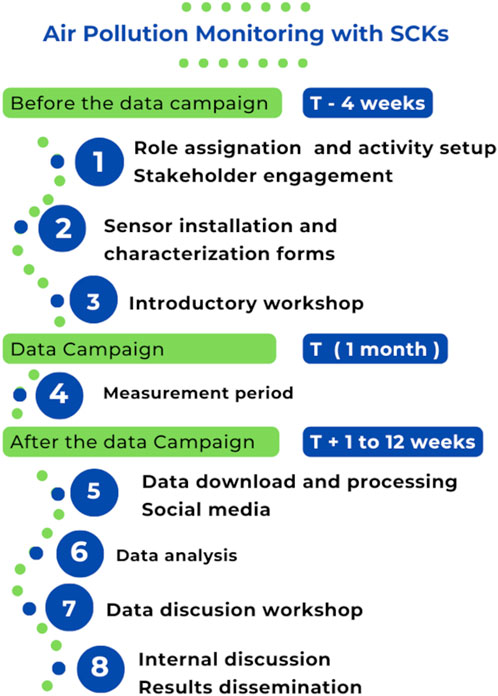 Figure 2. Implementation steps of Activity 1. Methodology followed for the ‘Air pollution monitoring with SCK’ campaign.