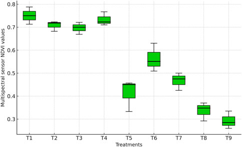 Figure 3. Boxplot showing NDVI values derived from the multispectral sensor across irrigation treatments.