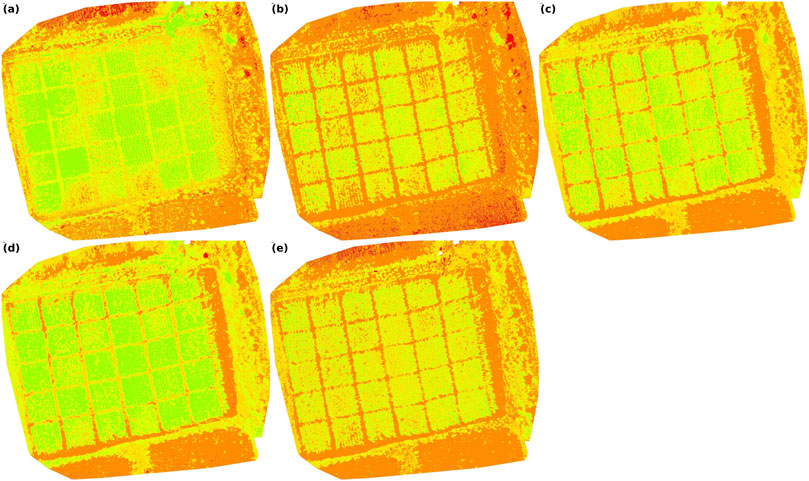 UAV imagery was processed in Pix4DMapper to generate orthomosaic maps for each spectral band. Vegetation indices—including NDVI, RDVI, SAVI, OSAVI, and TCARI—were subsequently calculated from reflectance values using ArcGIS, following established remote sensing protocols (Zheng et al., 2021).