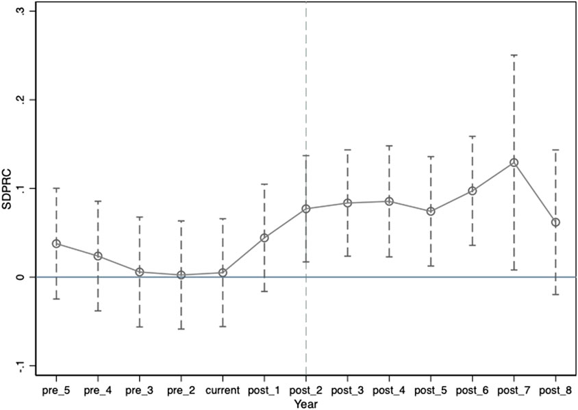 Within the literature on policy effects in RBCs, existing studies include reviews of China’s RBCs development policies (Li et al., 2013), case analyses discussing the development and transformation of specific Chinese RBCs (Yu et al., 2016; He et al., 2017), while some research concentrates on the provincial level (Zhang et al., 2018). The majority of evaluations regarding the effectiveness of policies targeting RBCs in China have focused on the policy introduced in 2007 specifically aimed at resource-exhausted cities (Sun and Liao, 2021; Yang et al., 2021; Yu et al., 2022; Shen et al., 2023). When it comes to the research on SDPRC, the existing research has studied on company’s green technological behavior (Sun et al., 2023); ESG performance (Wang et al., 2023); carbon emissions (Zheng and Ge, 2022); industrial transformation (Li et al., 2021).