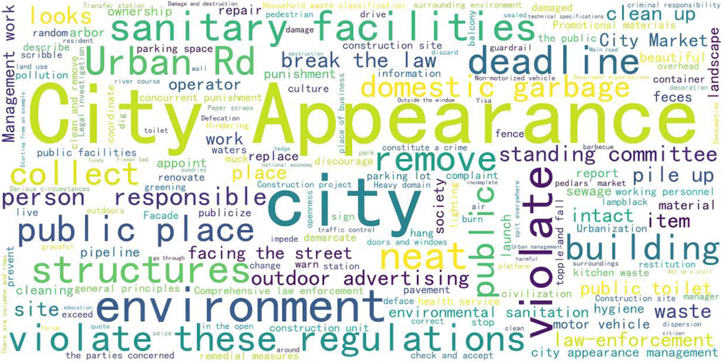 In terms of policy and regulatory system construction, China’s Regulations on the Administration of Urban Appearance and Environmental Sanitation have served as a model for developing countries in urban environmental sanitation governance (Katherine et al., 2022). It clarifies the principles of unified leadership, regional responsibility, and the integration of professional management with public participation, stipulating regulatory requirements for buildings, municipal public facilities, outdoor advertising, and methods for collecting, transporting, and disposing of domestic waste. However, studies have highlighted that specific provisions in the current regulatory framework are outdated, failing to meet the demands of rapidly evolving urban construction and management (Jiaming et al., 2024). Klaus et al. (2024), through research on multiple developed countries, found that dynamic update mechanisms for regulations are crucial to ensuring effective urban environmental management. Many countries revise their rules in response to urban development to address emerging management challenges. As cities grow, new business models, such as shared bicycles and food delivery services, have emerged, posing new challenges to urban management; yet, existing regulations lack comprehensive provisions for these areas.