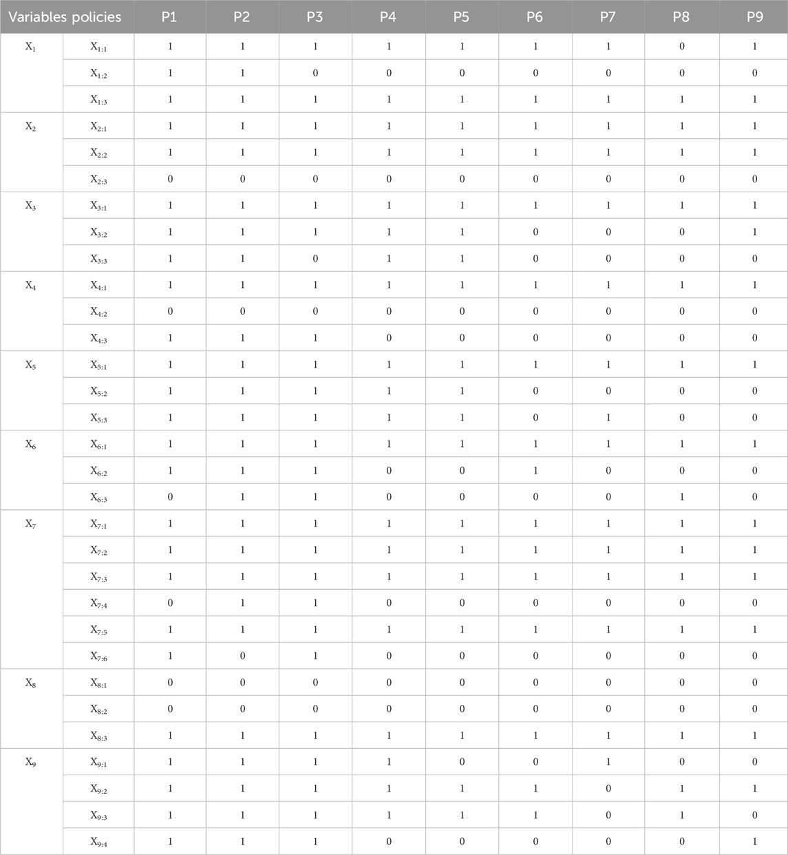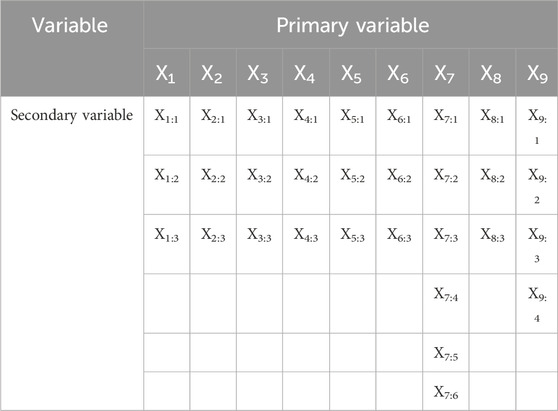 A multi-input-output table is essentially a powerful data analysis framework that can store massive amounts of data and allows for multi-dimensional measurement of individual variables (Sun et al., 2024). By using a multi-input-output table, we can gain a more comprehensive understanding of policy effects and provide support for informed decision-making. Within this framework, primary indicators are mutually independent with no correlation between them, and the weights of secondary indicators are equal. Table 5 is organized according to the study’s needs.