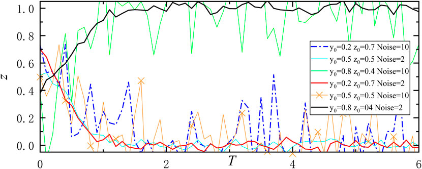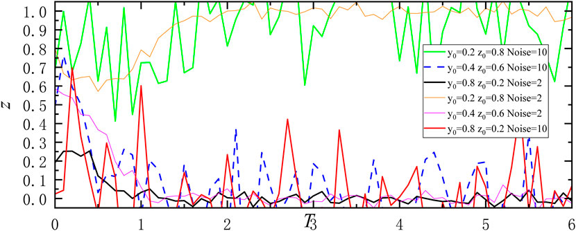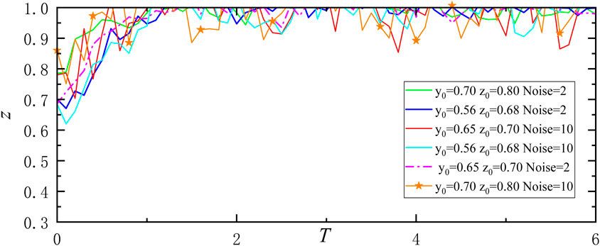 MATLAB was used to simulate the implementation effect of low-carbon housing to validate the three evolutionary scenarios of implementing low-carbon subsidies on low-carbon housing in noisy environments. Two noise environments have been set: