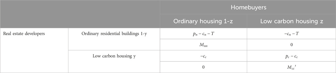 A game payment matrix is created, as shown in Table 1, assuming that the government offers low-carbon subsidies to both homebuyers and real estate developers.