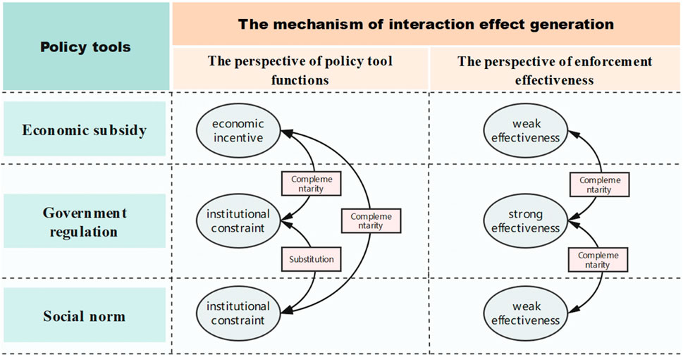 In summary, to present the interaction effects among the above three types of policy tools more clearly, we have drawn a mechanism framework diagram of their interaction (Figure 4), and put forward the following hypotheses: