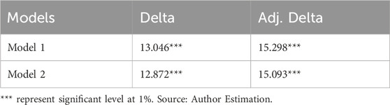 Table 8 presents the results of the Variance Inflation Factor (VIF) test for Models 1 and 2. The mean VIF values of 1.13 and 1.11, well below the threshold of 10, indicate no multicollinearity. VIF values ranged from 1.01 to 1.22 for all individual predictors, suggesting minimal correlation. This confirms the robustness and reliability of the regression estimates, with the VIF test serving as an essential diagnostic tool to ensure valid coefficient estimations.