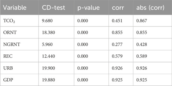 Table 4 displays the results of the slope heterogeneity analysis for Models 1 and 2, highlighting substantial variation in slope coefficients. These results indicate that while SCO member states exhibit some structural similarities, they diverge notably in their economic frameworks, levels of globalization, and socio-political contexts. The statistically significant p-values decisively reject the null hypothesis of slope homogeneity, demonstrating significant cross-national heterogeneity in variable relationships.