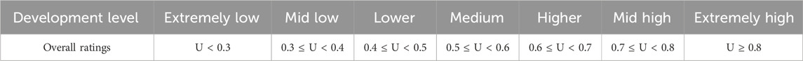 A comprehensive score of socioeconomic development can be obtained based on Formula 4 and relevant research on the level of socioeconomic development in existing urban areas (Ting and Fawen, 2021), as shown in Table 4.