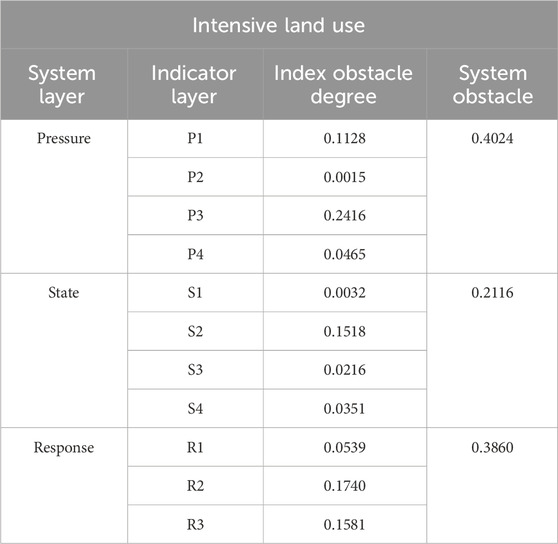 Based on the above comprehensive score formula, the value of the land intensive score L and the socioeconomic development comprehensive score U can be obtained for the resettlement area. The index obstacle factors are calculated using Formulas 7–10. This assessment aims to enhance the system’s comprehensive score and promote the coupling coordination level between the two subsystems (Zh et al., 2021; Shen et al., 2018).