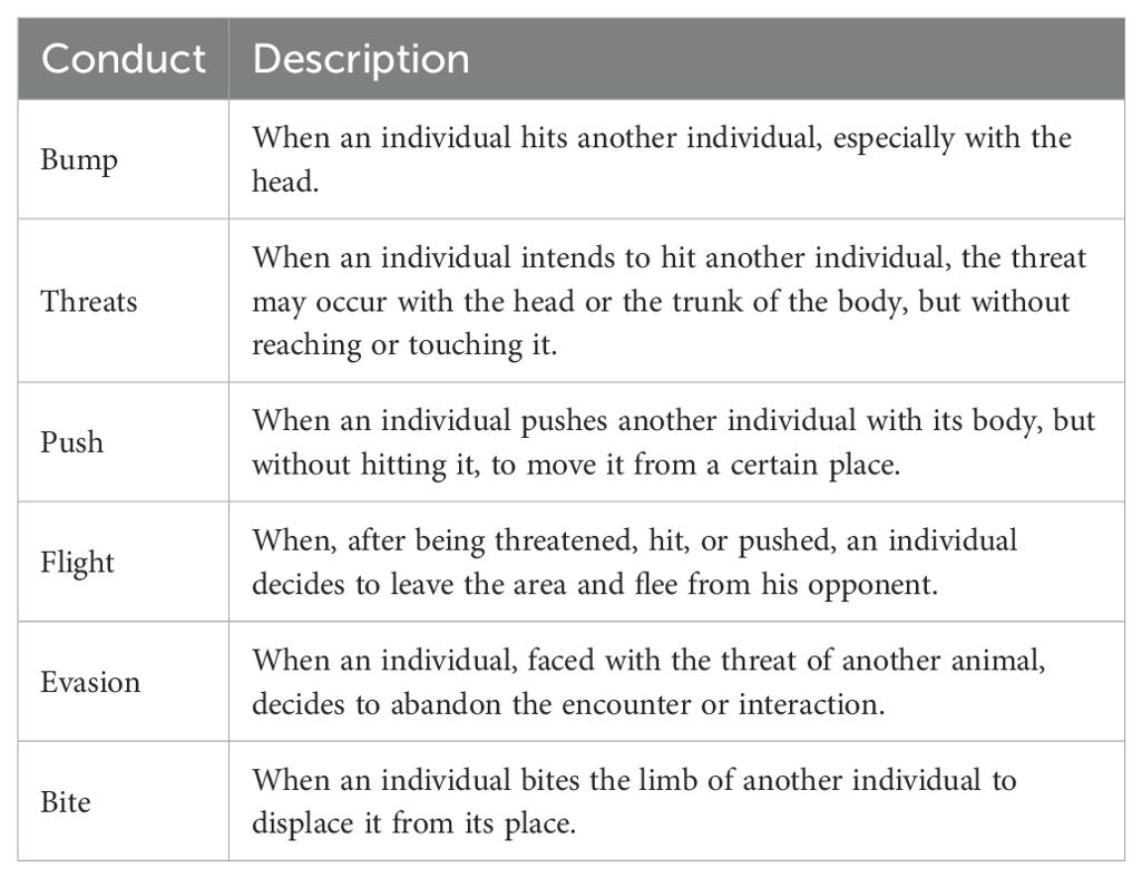 Social animals form ranks or hierarchies that enable their successful coexistence. The hierarchy had a substantial impact on the activity of each animal in the group. Individuals in social groups must share resources, and when these resources are scarce, they must compete actively for them. Therefore, animals may engage in agonistic encounters with conspecifics, primarily for food, mates, comfort, and protection (Craig, 1986; Seebacher and Krause, 2019). In goats, unlike other domestic herbivores, a high frequency of agonistic behavior and sometimes excessive aggression has been reported (Fournier and Festa-Bianchet, 1995; El Sabry and Almasri, 2023). Meanwhile, the social behavior of goats can be divided into affiliative and agonistic behaviors. Affiliative ones occur during various activities are likely to relax the animals involved or help reduce tension after a conflict, for example, alo-grooming. In contrast, agonistic behaviors occur when there is more tension in the group and competition for resources even leads to aggression (Górecki et al., 2020).