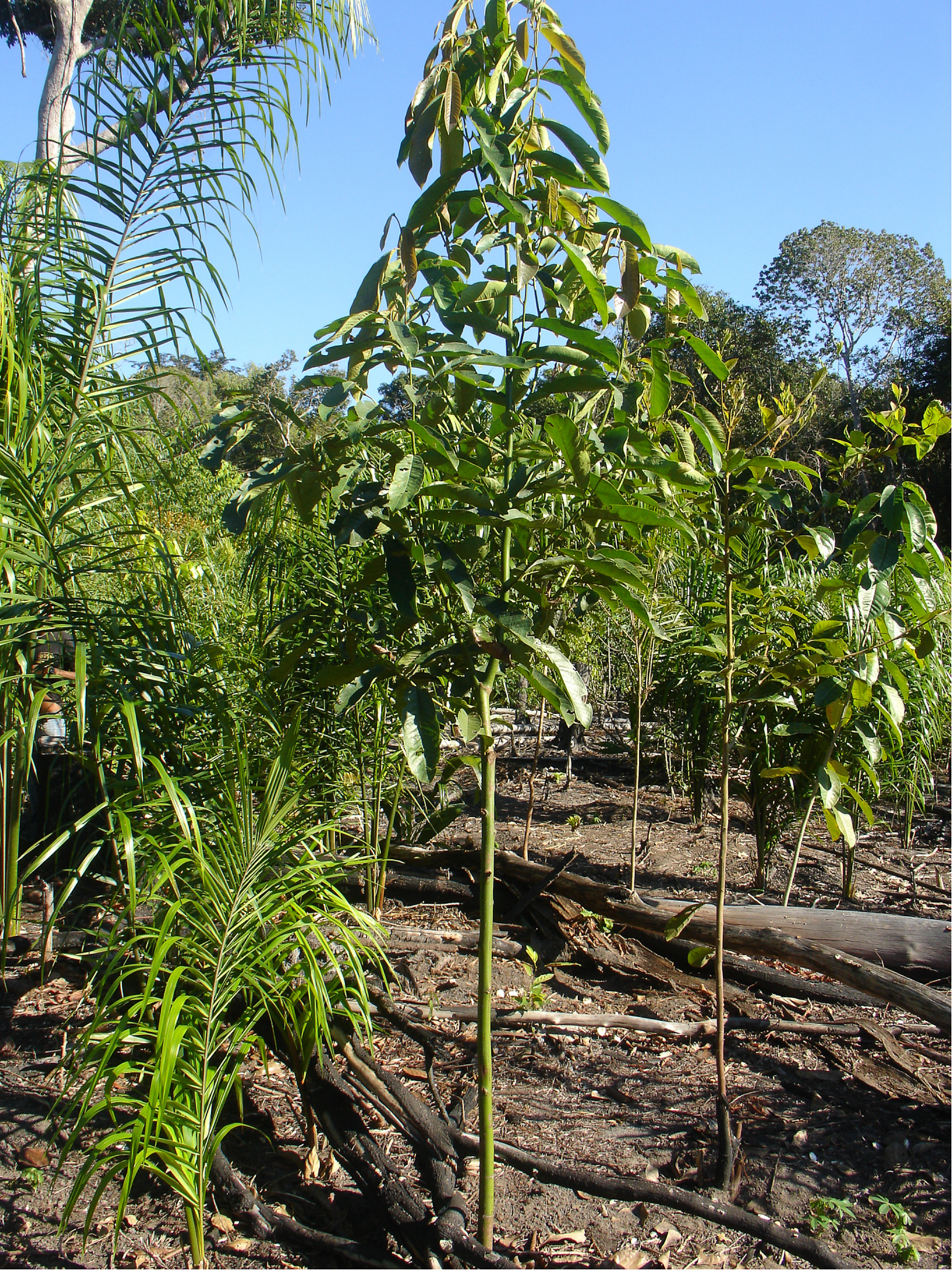 However, even areas that remain for longer periods in fallow, between 10 and 15 years, have their recovery affected by the history of fires or previous uses. As a result, many species characteristic of secondary forests—and that are important for forest regeneration and soil recovery—no longer grow spontaneously nowadays. Examples such as jatua’yp (Guarea cf. guidonia (L.) Sleumer), jatetayp (Maclura tinctoria L. Engl.), y”ga (Inga spp.) for the Kawaiwete and katepo (Hymenaea courbaril L.), kuryum (Enterolobium schomburgkii Benth.), oyot [Dipteryx odorata (Aubl.) Wild.], pitpirak (Qualea cf. paraensis Ducke), raegï (Xylopia amazonica R. E. Fries), yeron [Ocotea leucoxylon (Sw.) Laness.] and txiworo (Trattinickia cf, rhoifolia Wild.) for the Ikpeng.