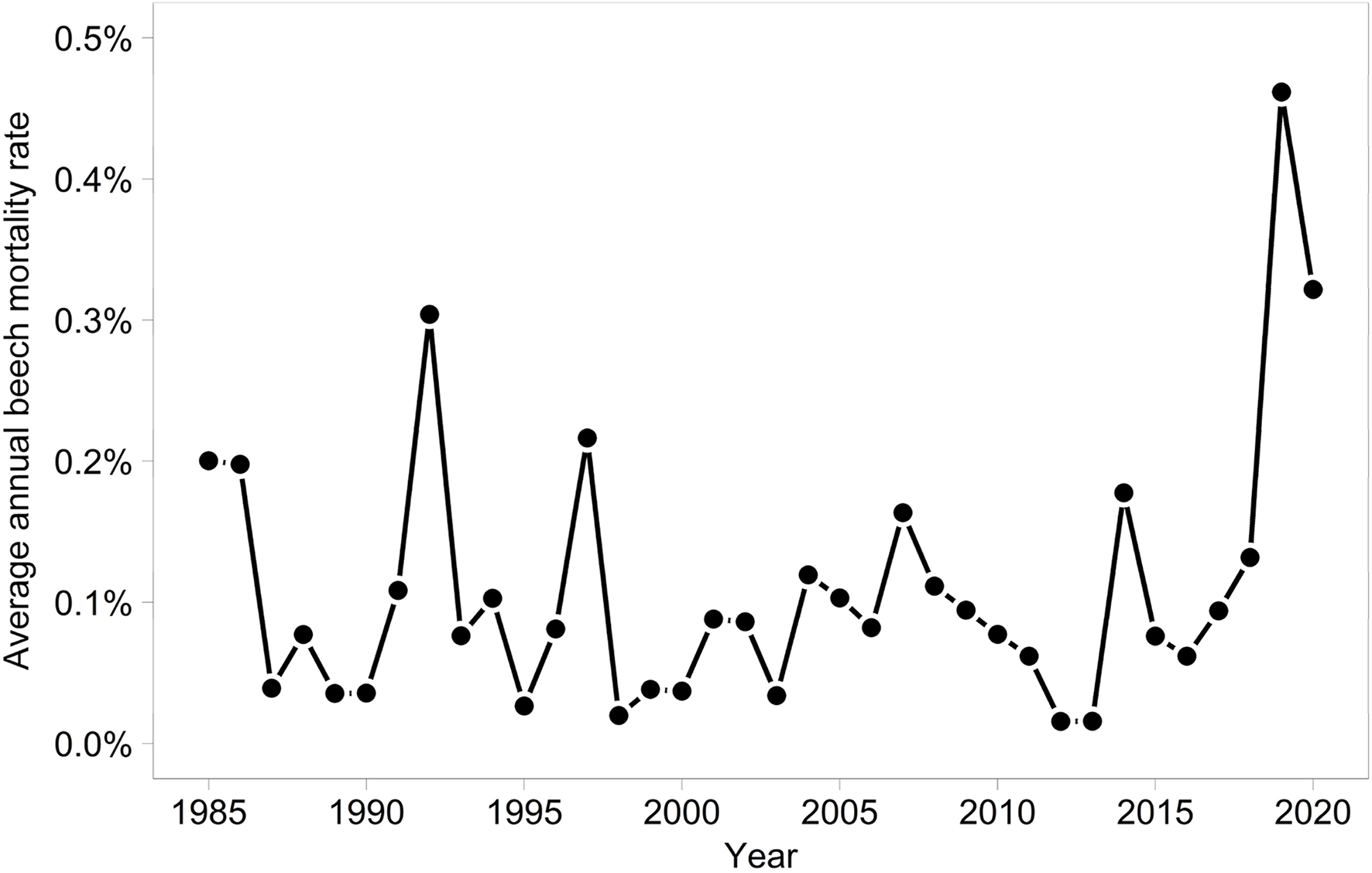 Annual average mortality rates of Fagus sylvatica.