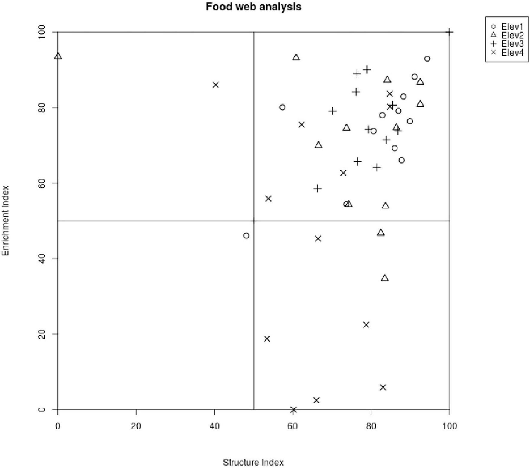 | Genus | Elev1 (1,000–1,400) | Elev2 (1,401–1,800) | Elev3 (1,801–2,200) | Elev4 (2,201–2,600) |