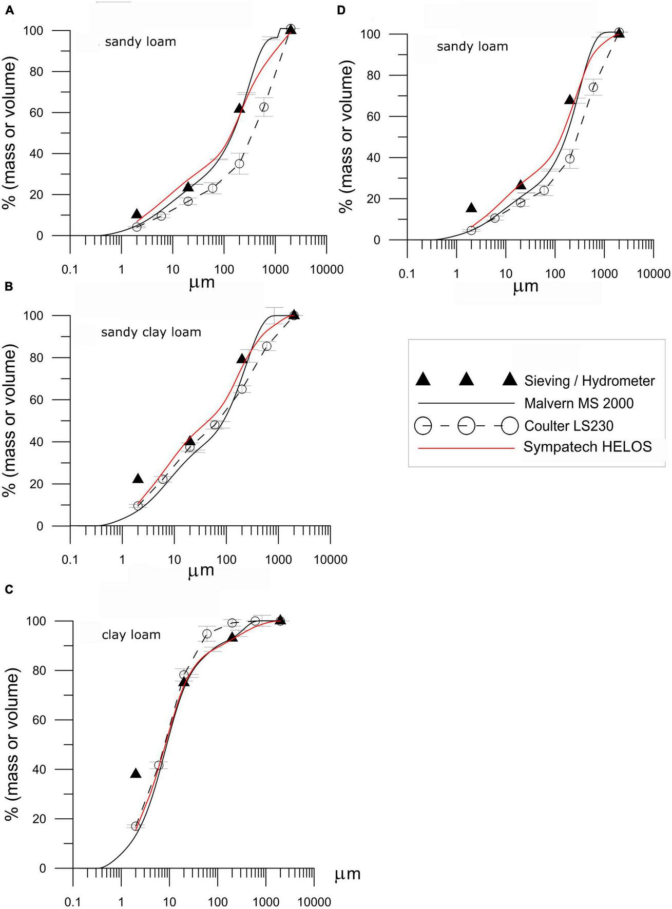 Fisher, P., Aumann, C., Chia, K., O’Halloran, N., and Chandra, S. (2017). Adequacy of laser diffraction for soil particle size analysis. PLoS One 12:e0176510. doi: 10.1371/journal.pone.0176510