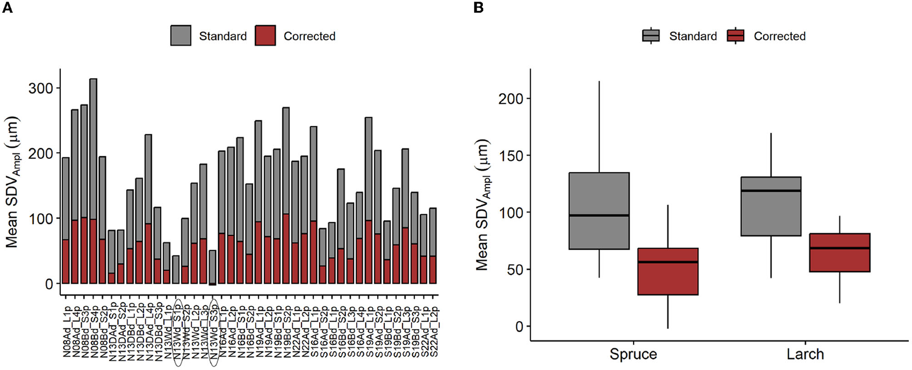 Corrections were applied to the mean SDVAmpl of each tree in the data set, using all the data points available for each (all years combined).