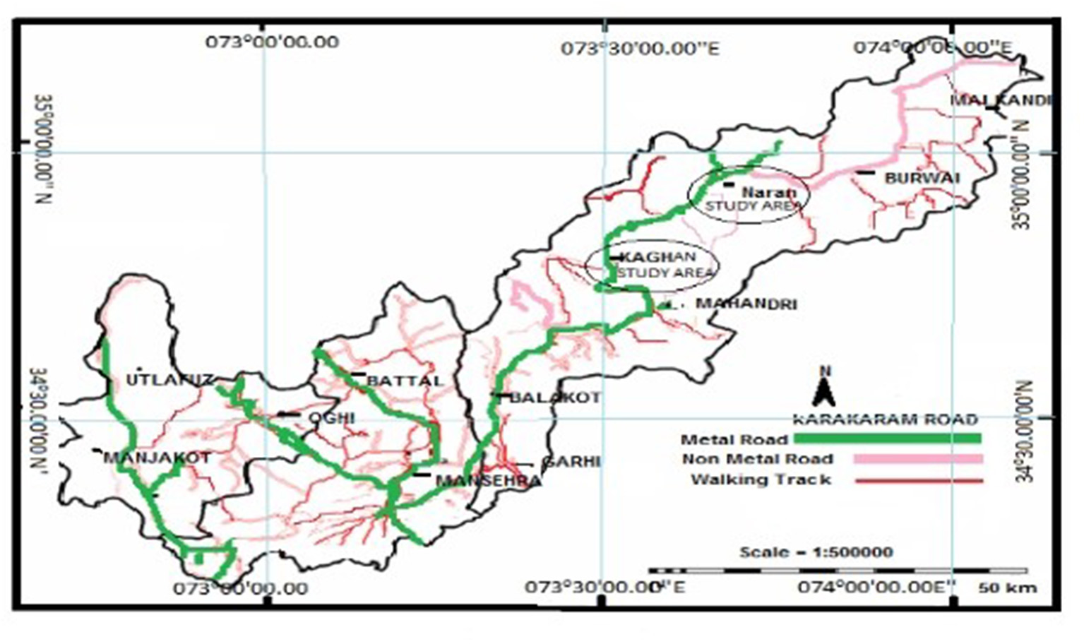 The valley of Kaghan (34.5417° N, 73.3500° E) is located in the mountains of the Western Himalayas, Pakistan with an elevation range of 650–4,170 m a.s.l (Figure 1). The valley is enveloped by the lower Himalayan mountain range, resulting in an alpine climate and the prevalence of pine forests and alpine meadows. The natural range of temperate forests covers an extensive area of the northwestern Himalayas in Pakistan, India, China, Nepal, and Bhutan. The area is located on gneisses and schists, extending over granites, limestones, and quartzite of the Precambrian age (Champion et al., 1965). The region's topography is a mosaic of rocky hills, rock outcrops, wetlands, and glaciated lakes of varying sizes (Hussain and Illahi, 1991).