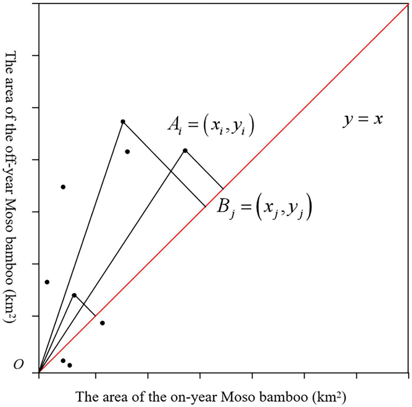 Remote sensing technology has been widely used in the monitoring of agroforestry production activities due to its wide scope, period imaging and comprehensiveness. In recent bamboo resource monitoring studies, some scholars have used Landsat or Sentinel-2 images to successfully map the spatial distribution of bamboo forests due to their data availability (Linderman et al., 2010; Guan et al., 2013; Han et al., 2014; Li et al., 2016; Ying et al., 2016; Chen et al., 2019; Zhang et al., 2019; Qi et al., 2022), and some scholars have used MODIS images to extract bamboo forest information on a large scale (e.g., East Africa, Southeast Asia, and globally), which has proven effective (Du et al., 2018; Cui et al., 2019). However, there are fewer related studies on the mapping of on-year and off-year MBFs. Based on a comparison of Landsat-8 and Sentinel-2 data, Li et al. (2019, 2022) analyzed the temporal spectral differences between on-year and off-year bamboo forests and proposed a multitemporal remote sensing index to map the on-year and off-year spatial distribution information of MBFs, which confirmed the use of remote sensing to accurately measure the spatial variation of MBFs.