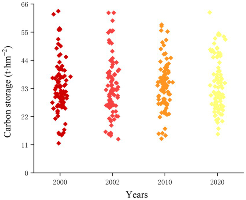 The concept of carbon peaking involves reaching the historical pinnacle of carbon dioxide emissions, followed by a period of decline. This signifies a pivotal shift from emission increase to decrease. The pursuit of the “two carbon goals” aligns with the aspiration for an improved quality of life after fulfilling basic material needs. Moreover, the timing and extent of carbon peaking directly influence emission reduction and the duration of the transition to carbon neutrality. Among terrestrial ecosystems, forests house the largest carbon reservoir, exceeding other ecosystems in carbon storage per unit area (Li and Jiang, 2004; Kuuluvainen and Gauthier, 2018; Lan et al., 2021). Optimal utilization of forest carbon sequestration proves to be a cost-effective approach. In comparison to industrial emission reduction, this strategy proves more efficient and vital in combating global climate change (Richards and Stokes, 2004; Makkonen et al., 2015; Pingoud et al., 2016). As global efforts toward carbon reduction and climate action persist, the exploration of forest carbon storage has gained substantial scholarly attention. Accurately assessing forest carbon stocks has evolved into a pivotal facet of research concerning global climate change and the carbon cycle (Siddiq et al., 2021).