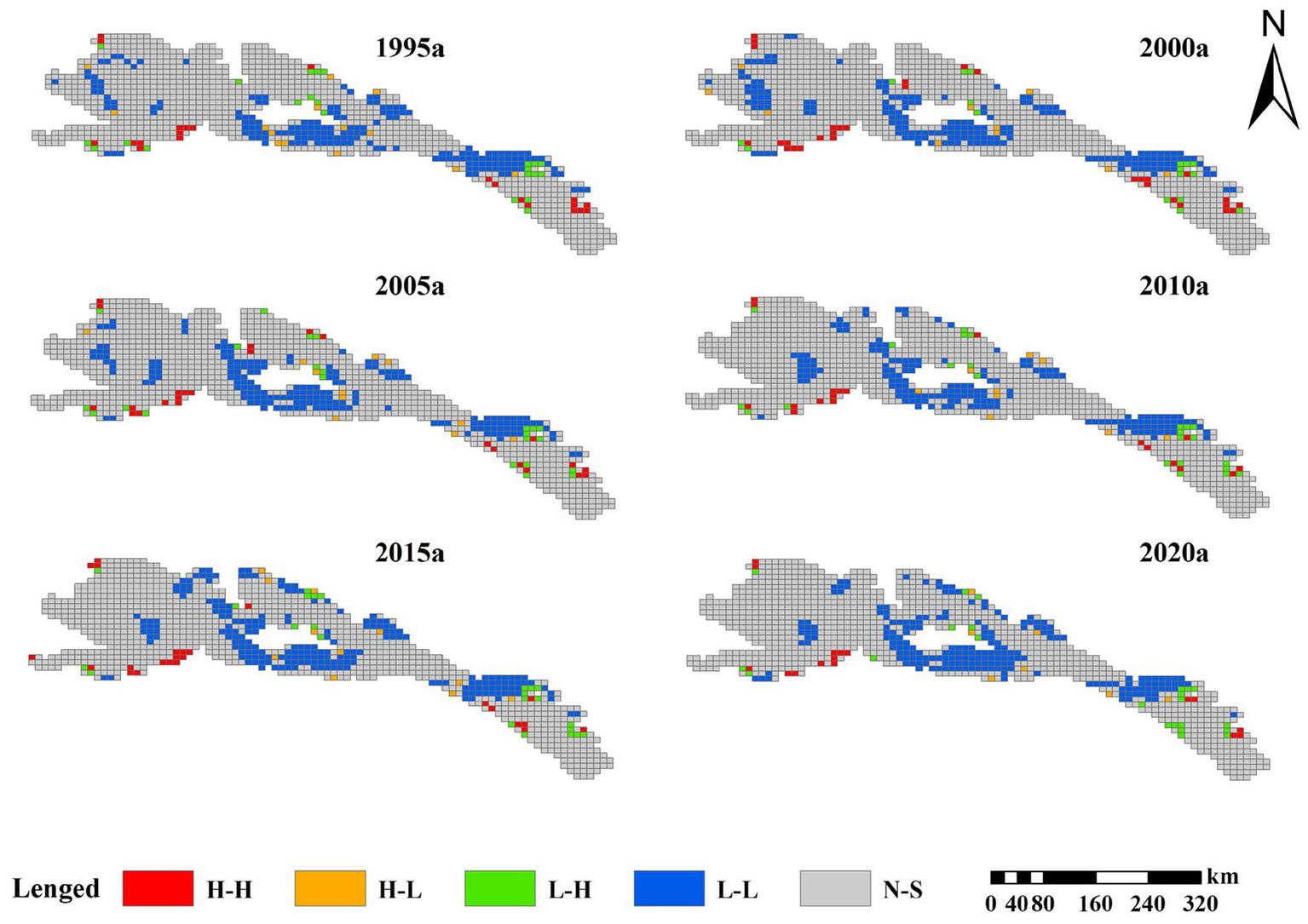 | Water bodies | 1995 | 20,355 | 0.2453 | 1.0000 | 1.4354 | 0.7097 |