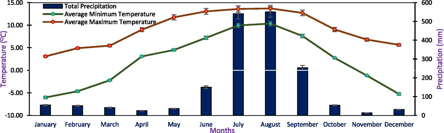 The mean monthly data of temperature and precipitation at Tungnath study site during 2017–2020 (Source: 20).