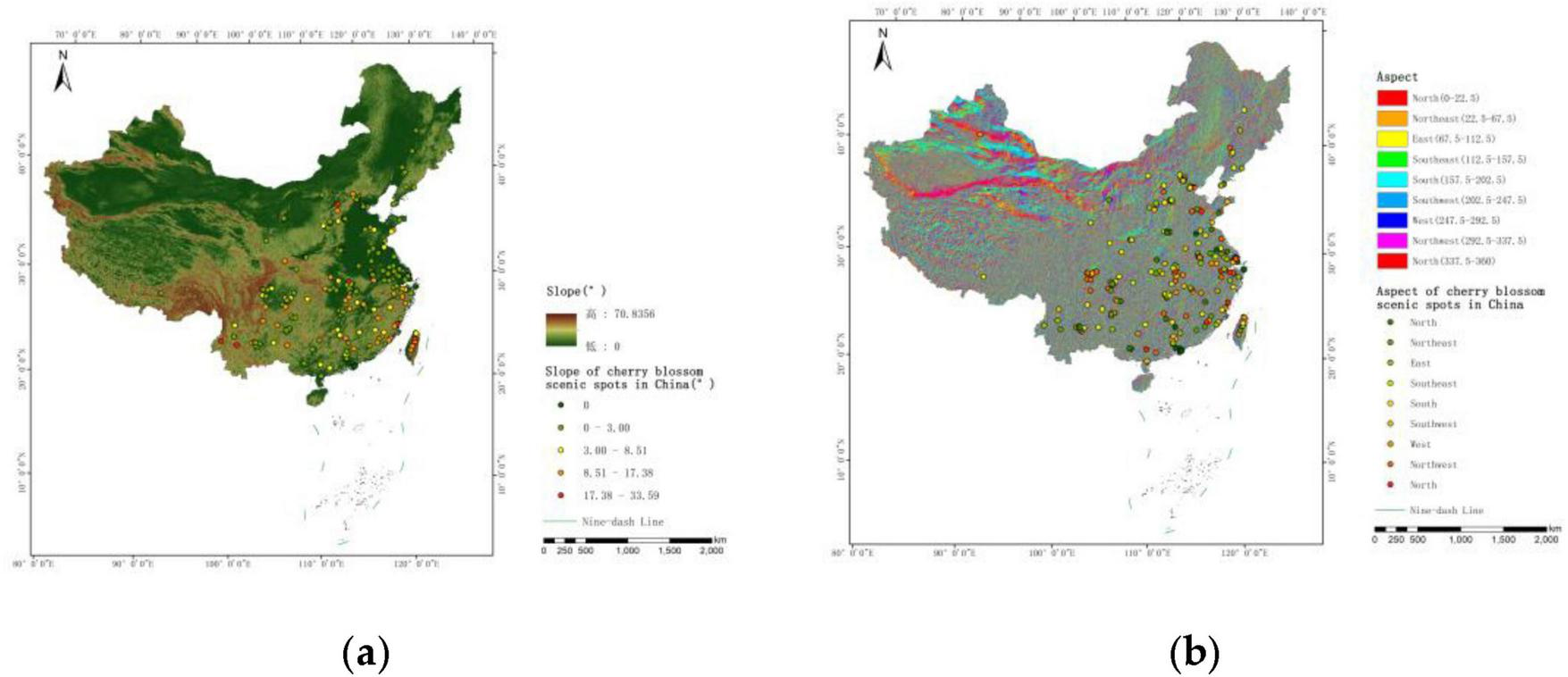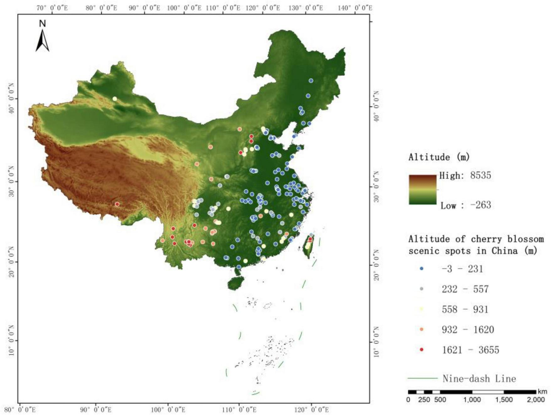 This study focused on 253 cherry blossom scenic spots with comprehensive foundational data obtained from preliminary investigations.