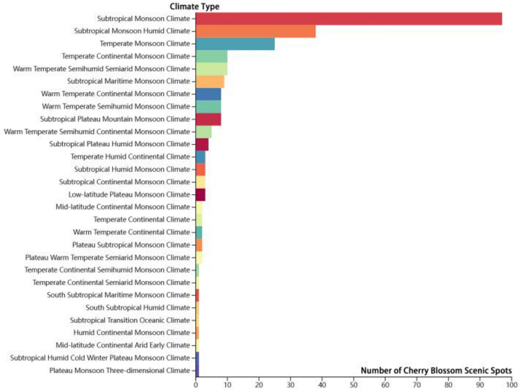 Peng H, Li P, Zhang X, Han Y, Sun R and Zhang C (2025) Spatial-temporal distribution characteristics, species selection, and influencing factors of cherry blossom scenic spots in China. Front. For. Glob. Change 8:1553808. doi: 10.3389/ffgc.2025.1553808
