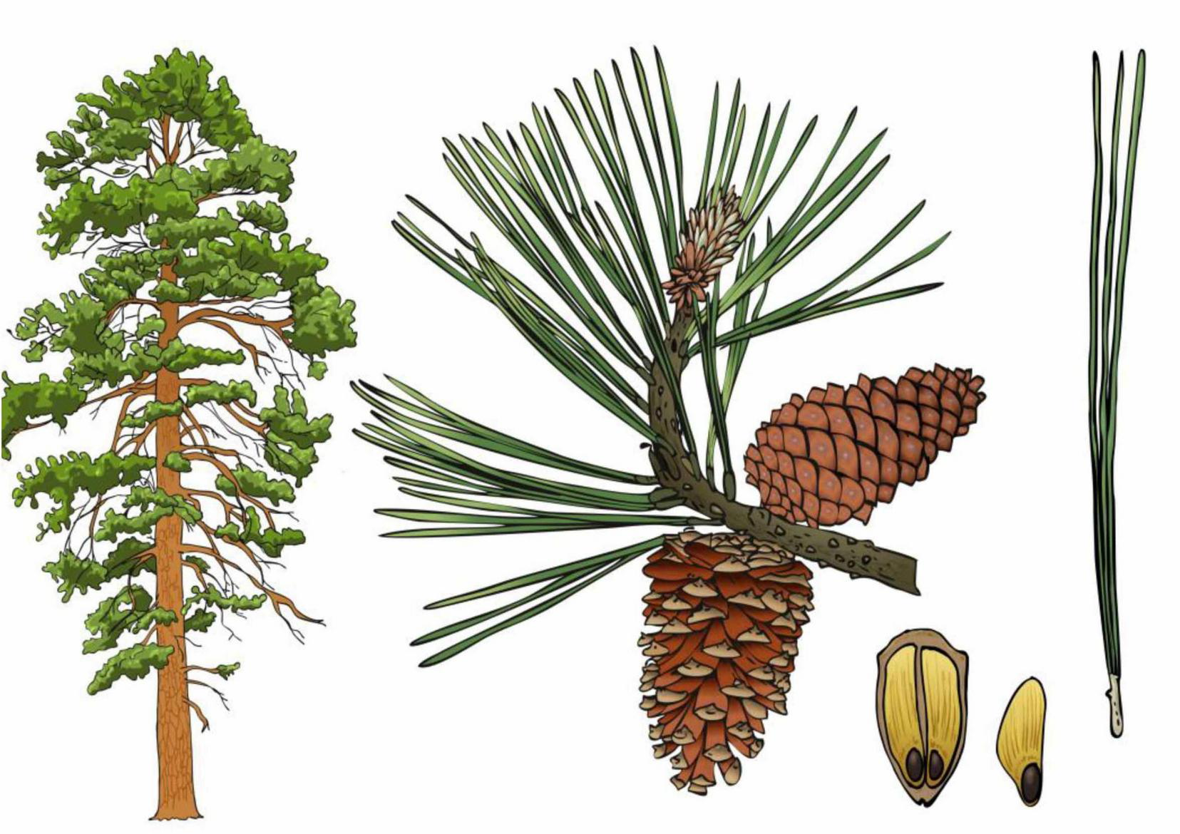 Tree habitus, branch with cones, needles, and scales with the seed of Pinus ponderosa (Douglas ex C. Lawson).