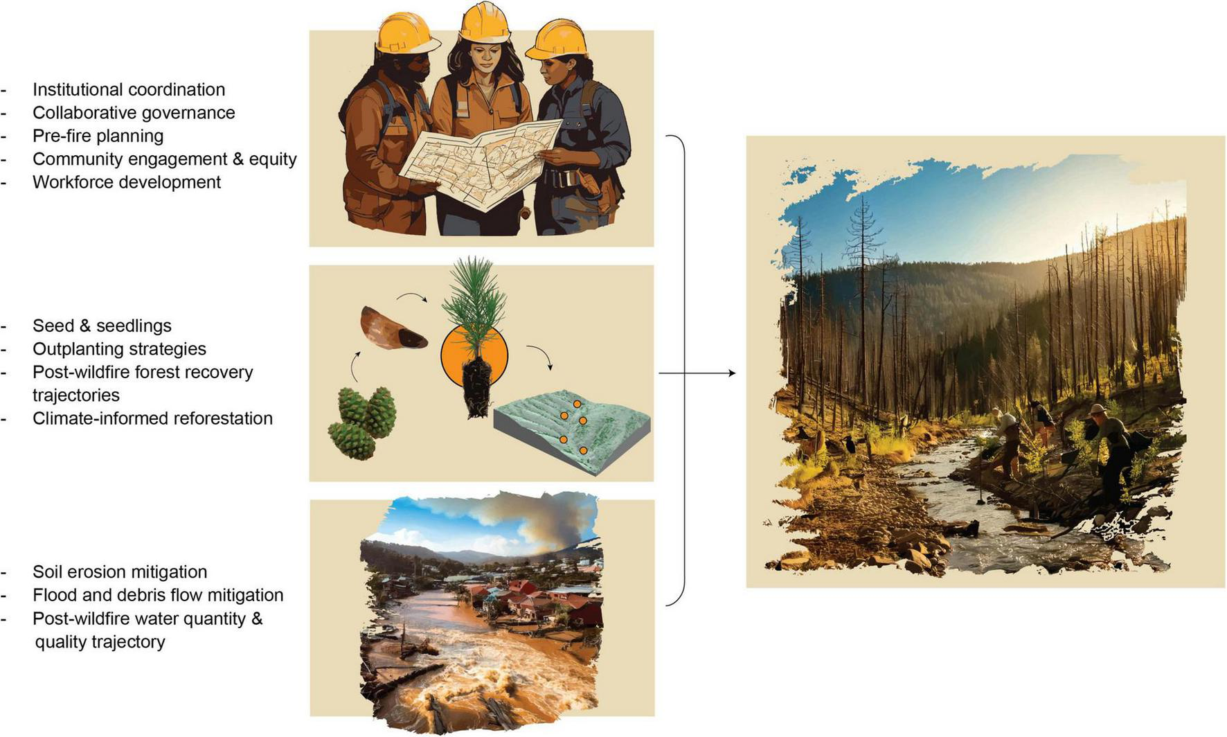 | Prioritizing post-fire forest recovery trajectories: when, where, and how should we accept forest conversion, support natural regeneration, and/or intentionally perform reforestation? |