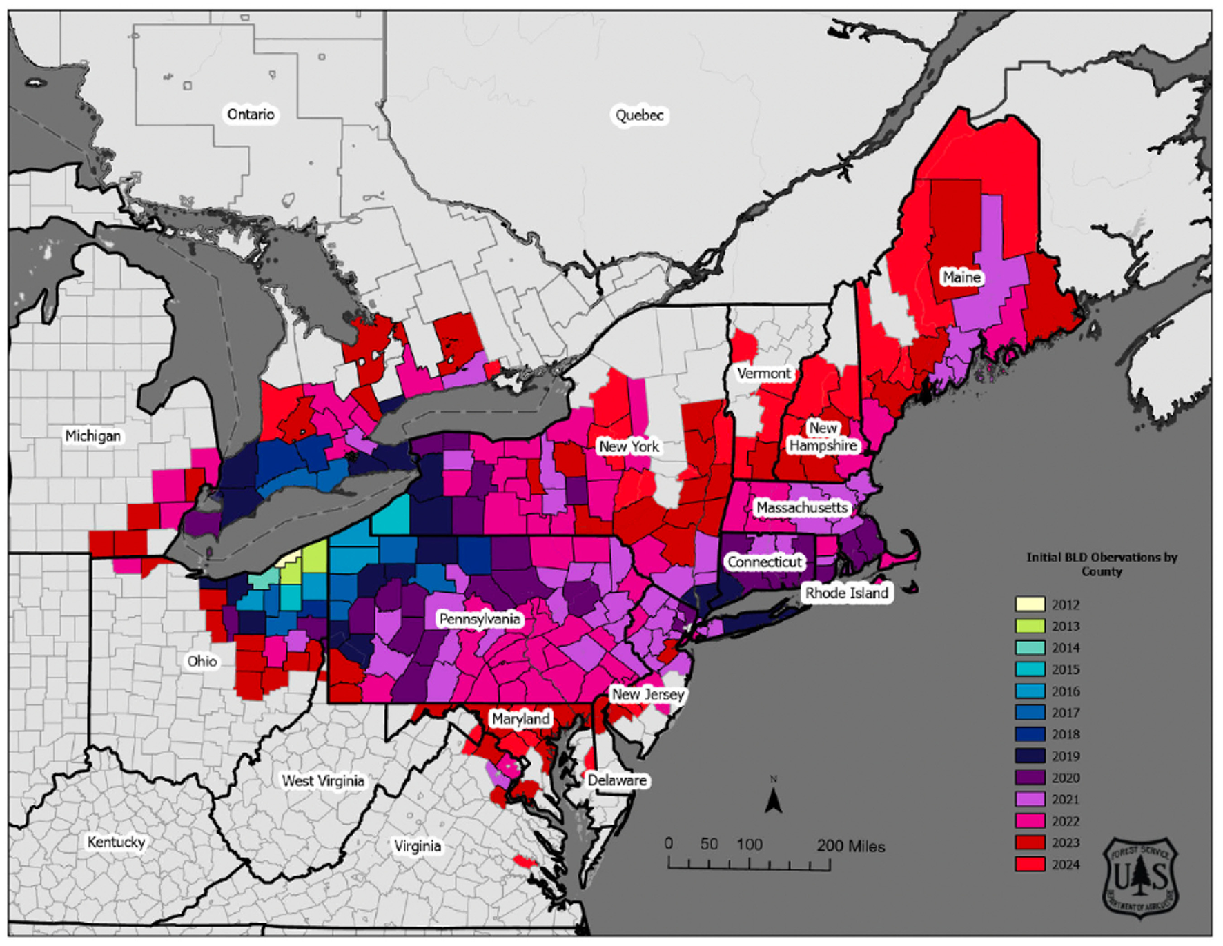 BLD distribution map in the U.S. Credit: USDA Forest Service.