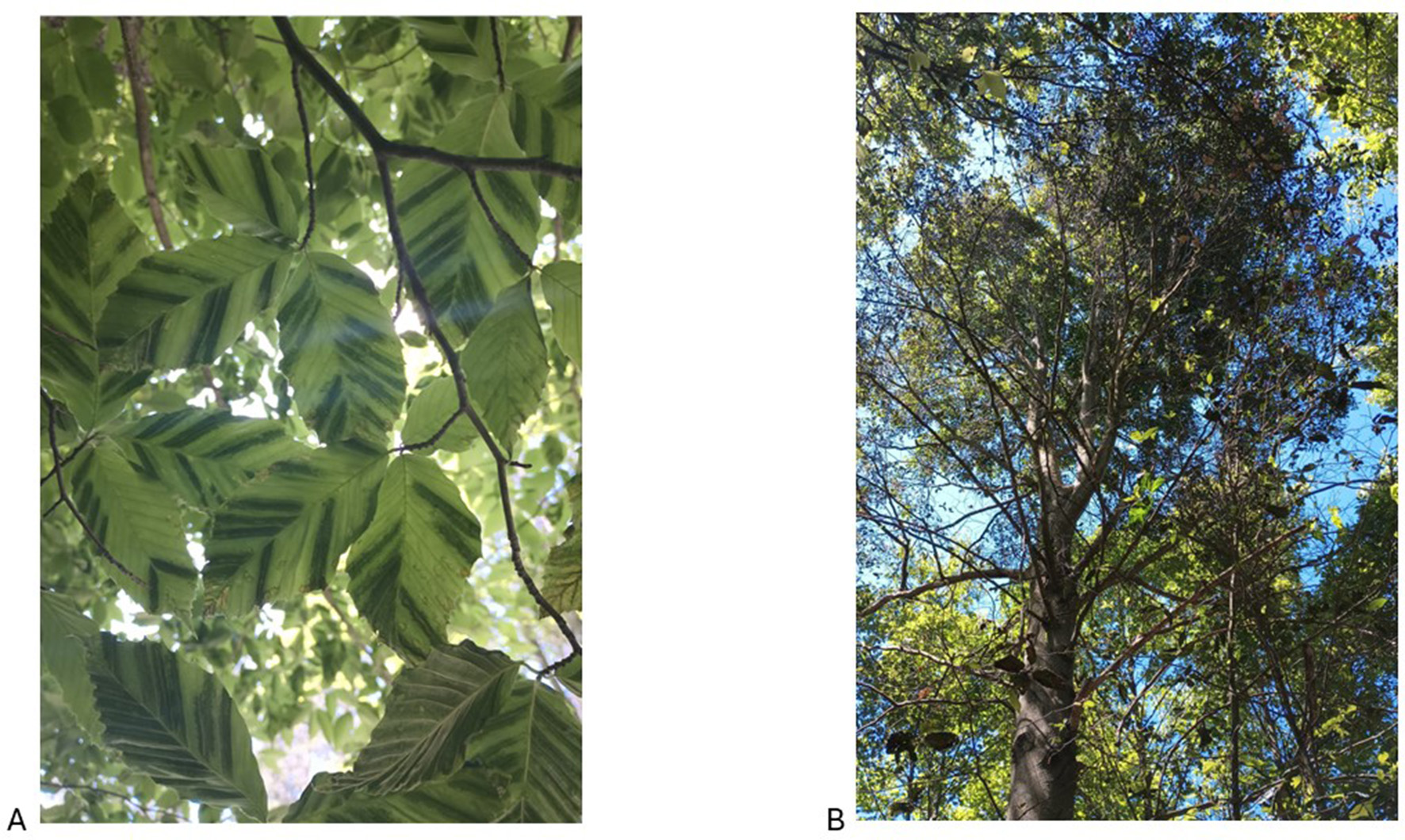 In northeastern North America, the American beech (Fagus grandifolia Ehrh.) is a dominant canopy species in sugar maple-beech-yellow birch and beech-sugar maple forests (Tubbs and Houston, 1990; Cale et al., 2013; Myers et al., 2023; Shepherd et al., 2025). Less prized from an economic standpoint, the American beech trees play a critical ecological role in the northeastern forests of North America, where they are essential for maintaining ecosystem health and sustaining a wide range of species (Myers et al., 2023). Beech is a primary source of hard mast, sustaining wildlife populations. It provides crucial resources for wildlife, including food sources for pollinators and other insects, beech nuts for mammals and birds, and nesting sites (shelter) for various species. American beech masts alone support over forty wildlife species, including black bears, deer, birds, and small mammals (Jakubas et al., 2004; Storer et al., 2005).
