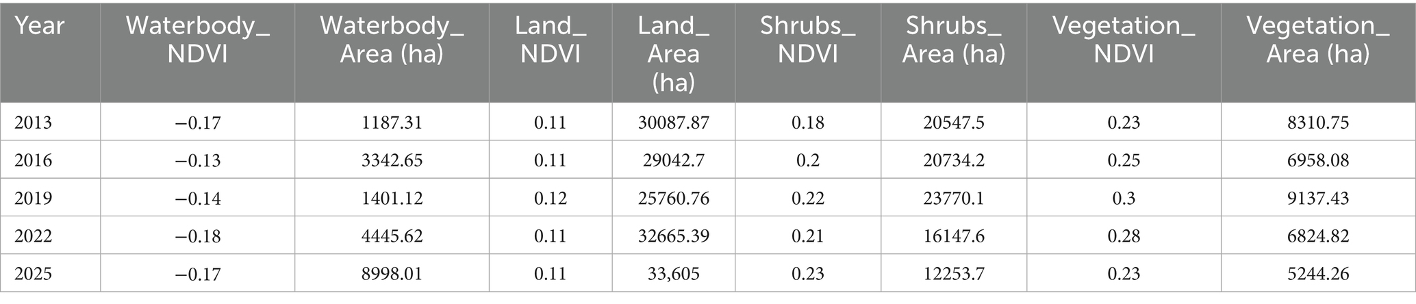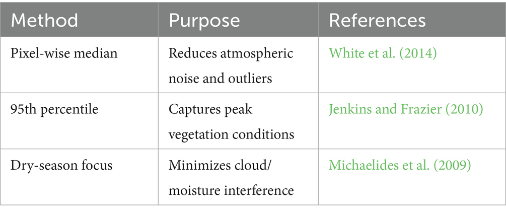 • Annual NDVI composites were generated using a pixel-wise median to minimize atmospheric noise