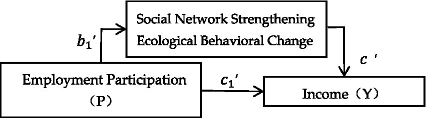 Building on established theoretical frameworks (Zhang and Li, 2016; Lu and Xie, 2017; Ma and Zhang, 2019; Zhang and Xu, 2023; Zhang et al., 2016; Xie and Chen, 2020; Li F. D. et al., 2021), this study examines two mediation pathways: social network reinforcement (measured by information channel diversity index) and ecological behavioral change (assessed through adoption of organic farming and carbon sink projects), which operationalize the mechanisms through which forest therapy employment influences income outcomes. Among them, the social network reinforcement is represented by the convenience of farmers’ access to market information channels (very low = 1; relatively low = 2; average = 3; relatively high = 4; very high = 5), and the ecological behavior change is represented by the frequency of farmers’ participation in environmental protection activities each year.