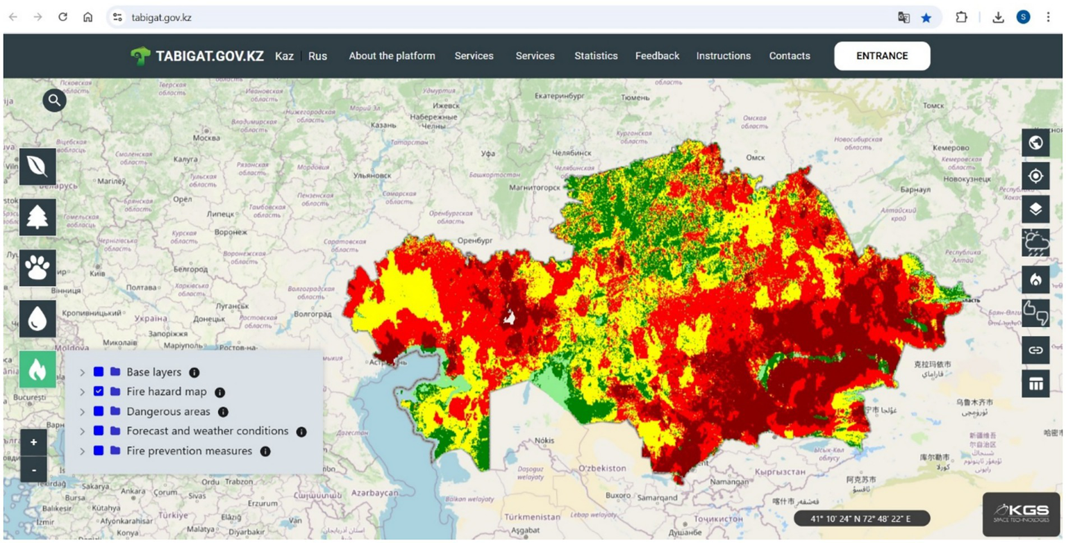 Snapshot of the fire risk map on 24th May, 2025 from the tabigat website (https://tabigat.gov.kz/).