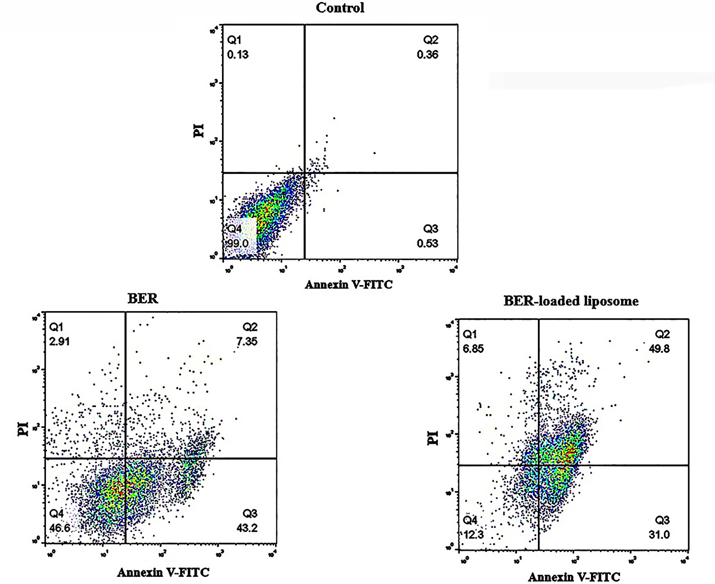 Figure 8. Effect of free BER and BER-loaded liposomes on induction of apoptosis in MKN-45 gastric cancer cell line.
