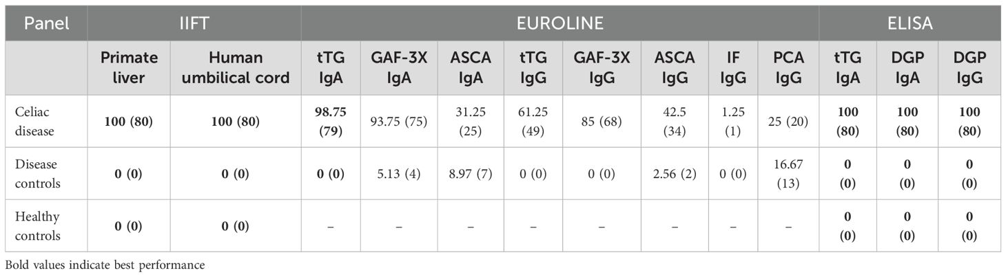 Methods: Serum samples from 80 celiac disease patients and appropriate controls were analyzed using three serological methods. IIFT was employed to detect IgA autoantibodies against endomysium using primate liver and human umbilical cord substrates. ELISA was used to quantify anti-tissue transglutaminase (tTG) IgA and deamidated gliadin peptide (DGP) autoantibodies. Immunoblots assessed additional autoantibodies (tTG, GAF-3X, and ASCA), along with further evaluation of IgG autoantibodies (intrinsic factor and parietal cell antibodies). Concordance among methods was evaluated.