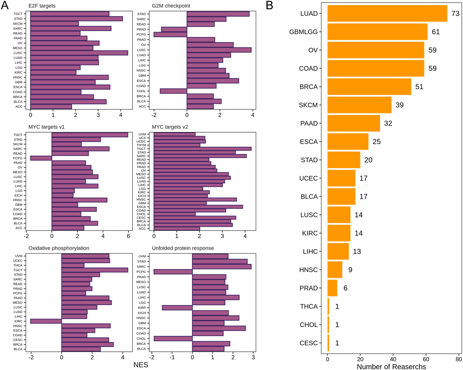 Combining all the data, we can conclude that DDX56 has a tumor-promoting function in most solid tumors. However, it may promote tumor progression in different ways in different cancer types. Therefore, we summarized the consistency of those aspects among different cancer types (Supplementary Table S3). For instance, there was no evidence that DDX56 could promote the proliferation of pheochromocytoma and paraganglioma (Figure 3A, NSE<0 or insignificant in all proliferation-related pathways). However, we observed that it was related to low level of apoptosis (Figure 5A, Supplementary Table S3) and could affect the infiltration of some immune cell types in pheochromocytoma and paraganglioma (Figure 5B, Supplementary Table S3).