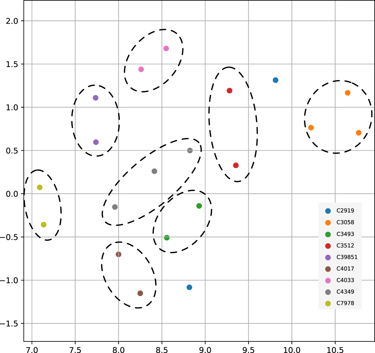 So far, we used FDR cutoff to identify significant genes within an analysis. However, among the genes not passing the threshold, their p-values entailed information and constituted a pattern which could distinguish between cancer types. To test this hypothesis, we used the genome-wide significance scores to assess similarities between cancer types. We used uniform manifold approximation and projection (UMAP) to reduce the gene significance p-values to two dimensions and indicated identical cancer types from different data sources with the same color (Figure 5). All matched cancer types were represented in a neighborhood, except for prostate adenocarcinoma (C2919). The ability to differentiate between cancer types substantiated that each gene’s p-value from the method contained additional information about the analyzed cancer type.