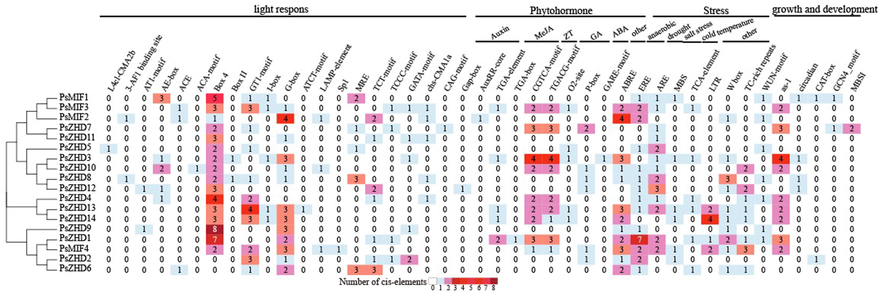 Analysis of Cis-acting elements of ZF-HD gene family in P. sative.
