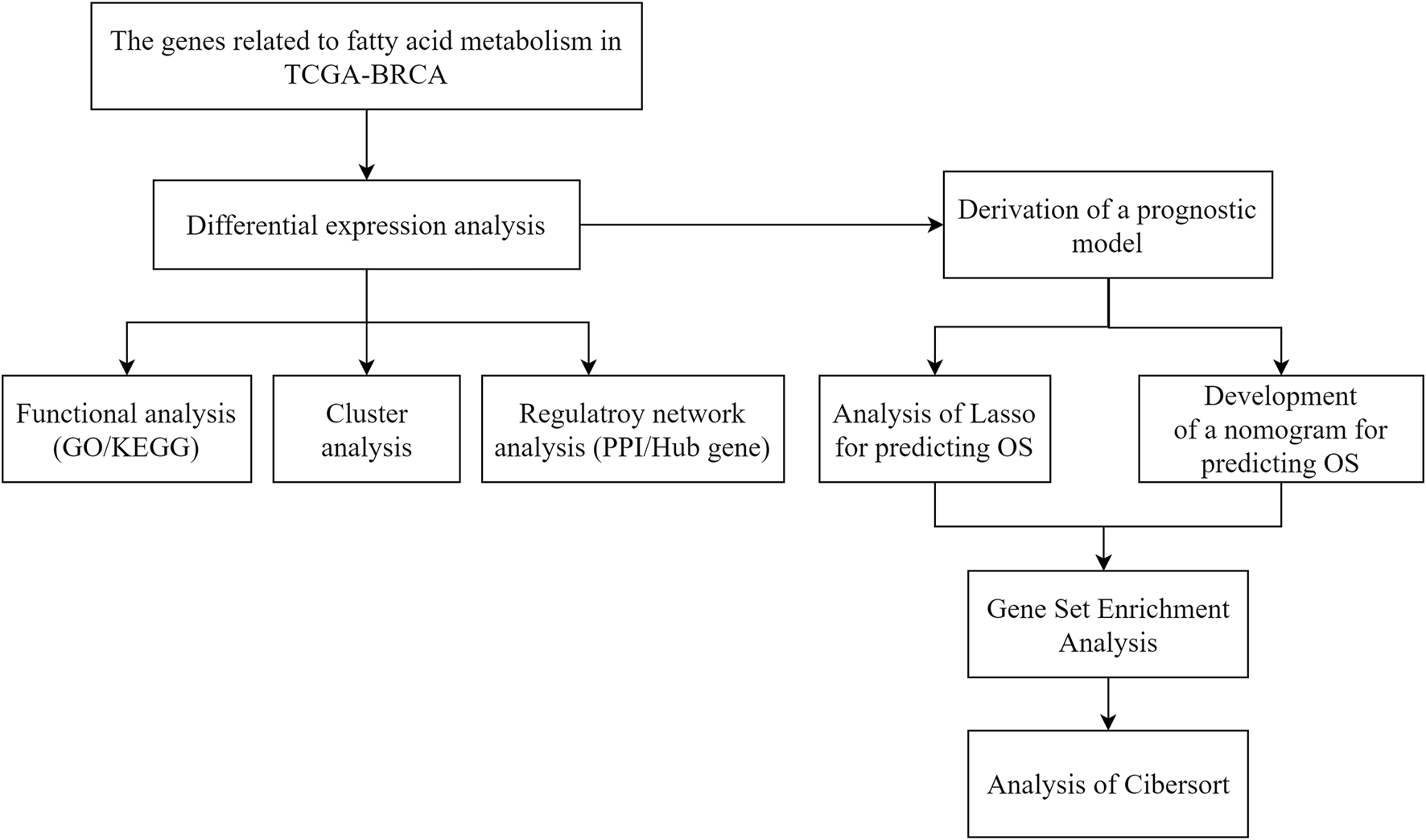 Aim: This study aimed to explore the feasibility of a prognostic model for patients with breast cancer based on the differential expression of genes related to fatty acid metabolism.