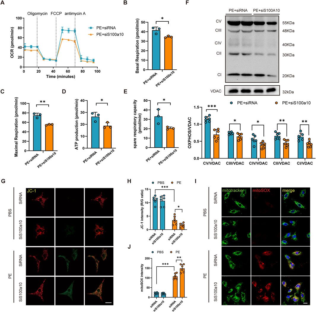 3.4 Knocking down of S100a10 exacerbates PE-induced mitochondrial respiratory dysfunction