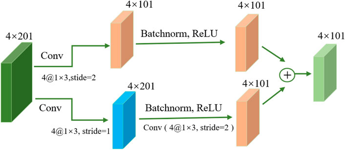 The feature extraction stage employs a combination of residual networks, multi-scale CNN, BiLSTM, and BiGRU. The input data is first passed through a residual network block designed to capture multi-level and abstract features, enhancing the model’s ability to understand complex patterns within the RNA sequences. The output from this block is then processed through a parallel module. One branch of this module incorporates a multi-scale convolutional block, where multiple convolutional filters of different scales are applied in parallel, each followed by a max-pooling layer, ReLU layer and Dropout layer (Wu and Gu, 2015) to improve feature detection and reduce overfitting. This multi-scale approach allows the model to capture features at varying levels of granularity, a crucial innovation for detecting subtle patterns in RNA sequences.