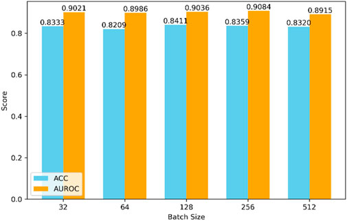Firstly, regarding the model’s batch size, as depicted in Figure 4, we compared batch sizes of 32, 64, 128, 256, and 512. Through comprehensive comparison, the model performs best when the batch size is 128.