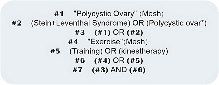 Search terms: The English search terms included “Polycystic ovarian syndrome,” “Polycystic ovary,” “Stein*Leventhal Syndrome,” “Exercise,” “Training,” and “kinesitherapy.” The search was conducted by combining subject and entry words, and the references of the included articles were traced back to supplement the records that were obtained. The Chinese search terms included “polycystic ovary syndrome,” “polycystic ovary,” “polycystic ovary syndrome,” “exercise,” “training,” and “physical therapy.” Boolean logic words were used for the professional searches.