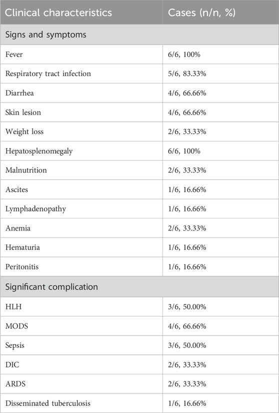 Most cases exhibited persistent fever, recurrent respiratory infections, hepatosplenomegaly and chronic diarrhea (Table 5). Genetic analysis revealed that 83.33% harbored nonsense mutations in the IL2RG gene, with 66.67% carrying the c.464G > A (p.Trp155*) variant. Notably, both this study and recent literature suggest a significantly increased incidence of T. marneffei co-infection in patients with X-SCID. Therefore, detection of this pathogen should prompt clinicians to consider underlying immunodeficiency, enabling earlier diagnosis and timely intervention.