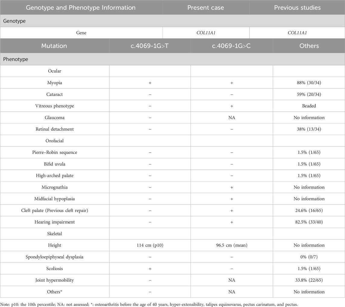 Table 1. Comparison of the phenotypes of Stickler syndrome reported in previous studies and this study.