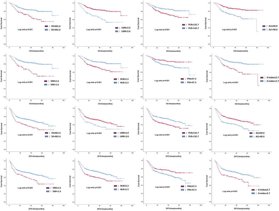 (8) H-index = [Absolute neutrophil count × Absolute monocyte count]/[Absolute lymphocyte count × Hemoglobin × Albumin] × 104.